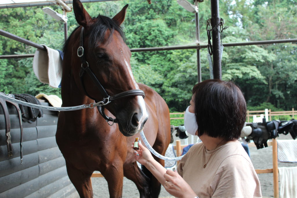 実際馬に精油を嗅いでもらうと、まばたきや体の動きでリラックスしているかどうかがわかります。
