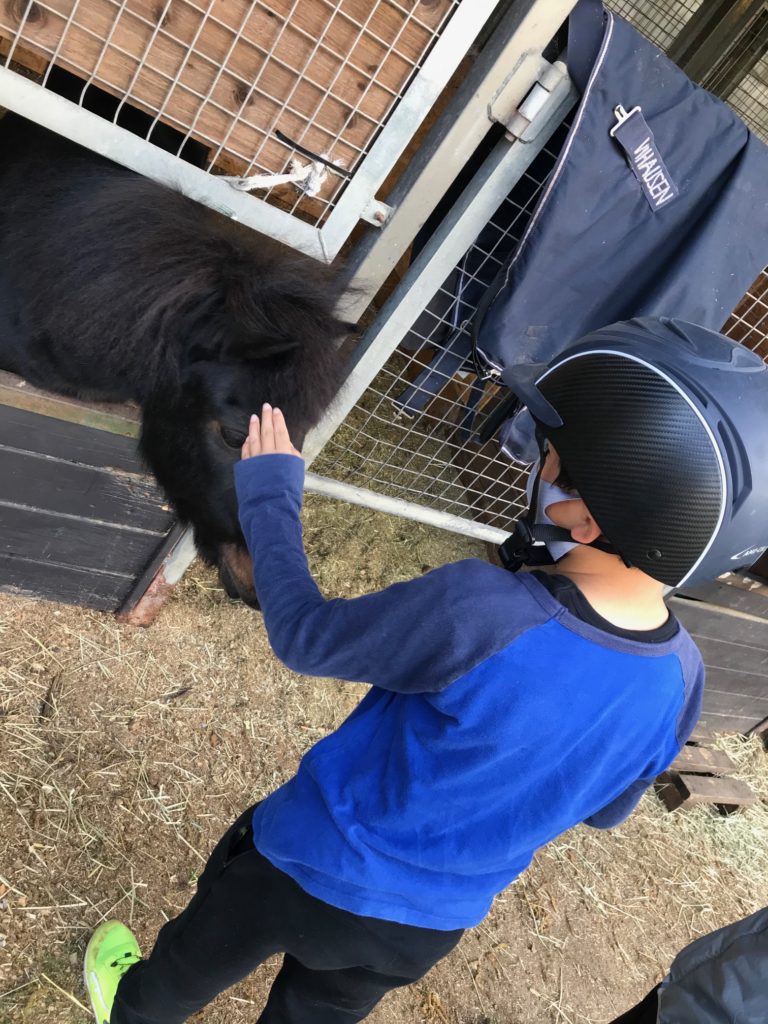 今回はポニーのくまじーに小学3年生の男の子が触れ合いに来てくれました!